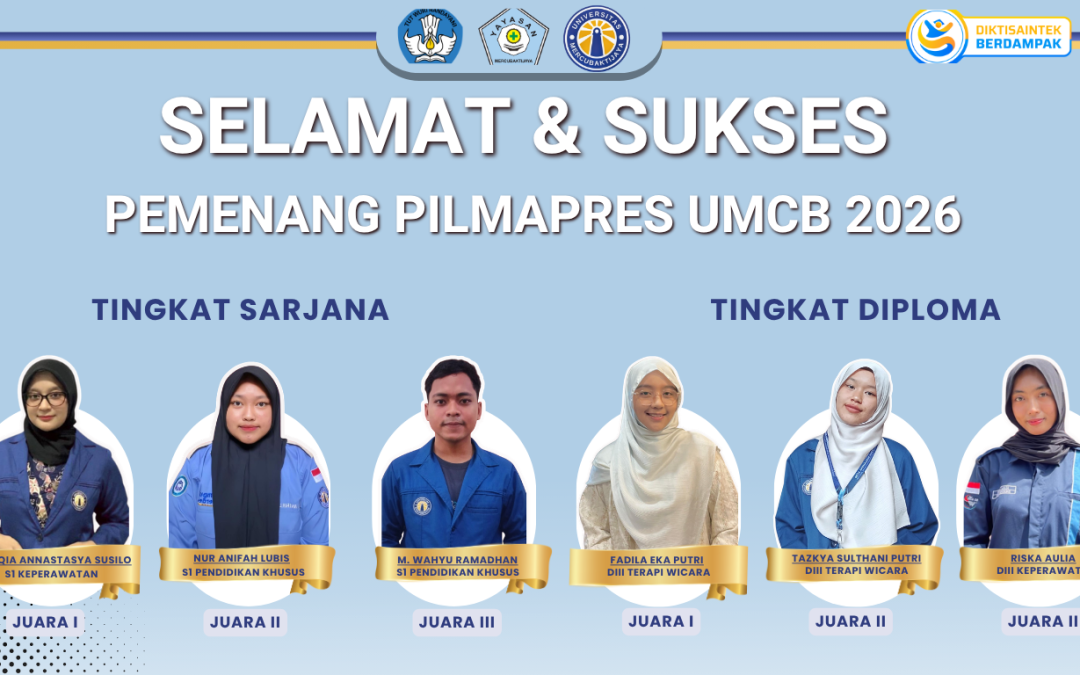 Padang – Universitas Mercubaktijaya (UMCB) menetapkan pemenang Pemilihan Mahasiswa Berprestasi (PILMAPRES) Tahun 2026 yang akan mewakili kampus pada ajang PILMAPRES tingkat Lembaga Layanan Pendidikan Tinggi (LLDIKTI) Wilayah X. Penetapan ini merupakan hasil dari rangkaian seleksi yang berlangsung secara ketat dan komprehensif.